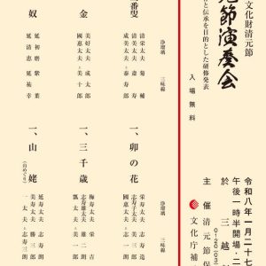 日時:2026年1月27日(火)14時開演 会場:三越劇場 料金:入場無料 ※招待券のお申込みは、各出演者、または下記宛先へお問い合わせください。 お問い合わせ先:090-2466-4901/090-2443-5771 […]
