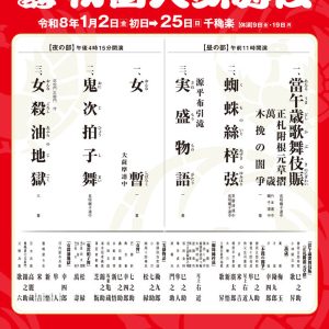 日程:2026年1月2日(金)~25日(日) 時間:昼の部 午前11時~「當午歳歌舞伎賑」「蜘蛛絲梓弦」 休演:9日(金)、19日(月) 劇場:歌舞伎座 詳細はこちら>>